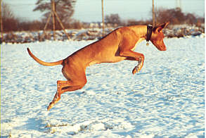 Hier die Hündin Tal-Wardija Arja Helwa bei der Mäusejagd im